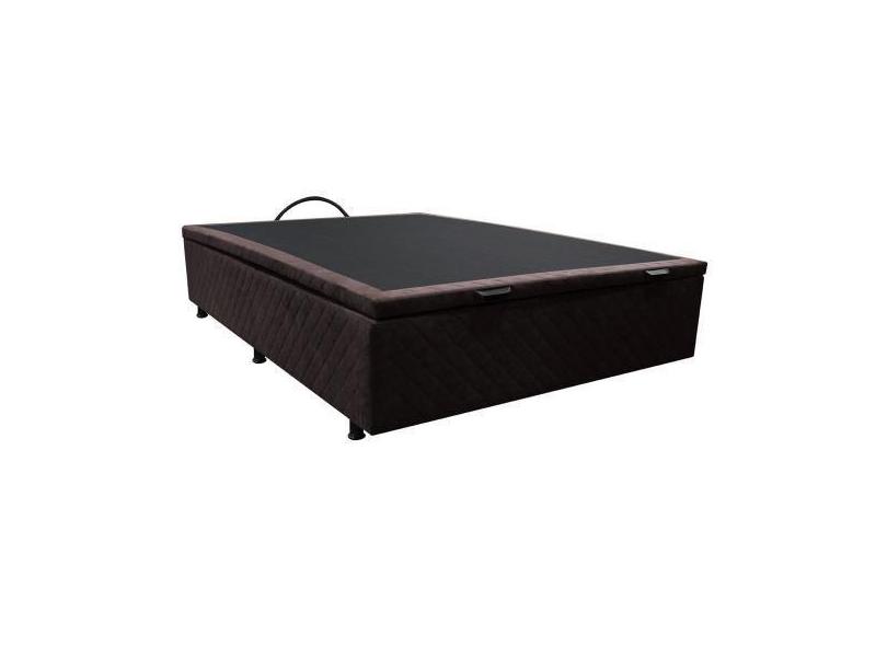 Base Box Baú Para Cama Viúva 128X188cm Liz S05 Suede Bordado Marrom -
