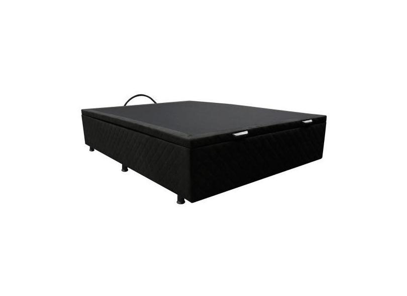 Base Box Baú para Cama Viúva 128x188cm Liz S05 Suede Bordado Preto - M