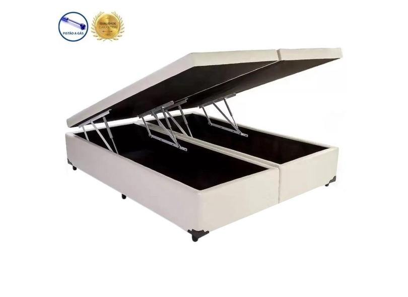 Base Box Baú Queen Bipartido Belos Sonhos Sintético Bege 49x158x198