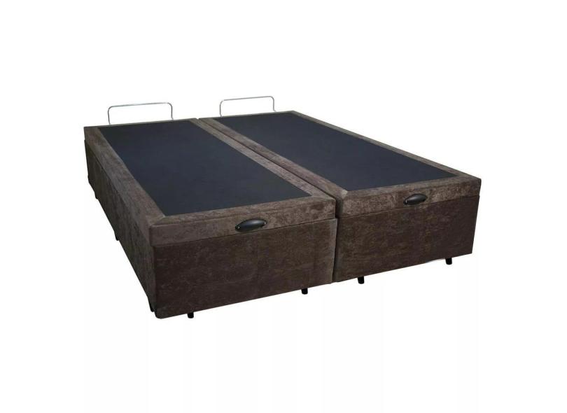 Base Box Bau Queen Bipartido Premium Santo Box Suede 47x158x198