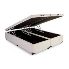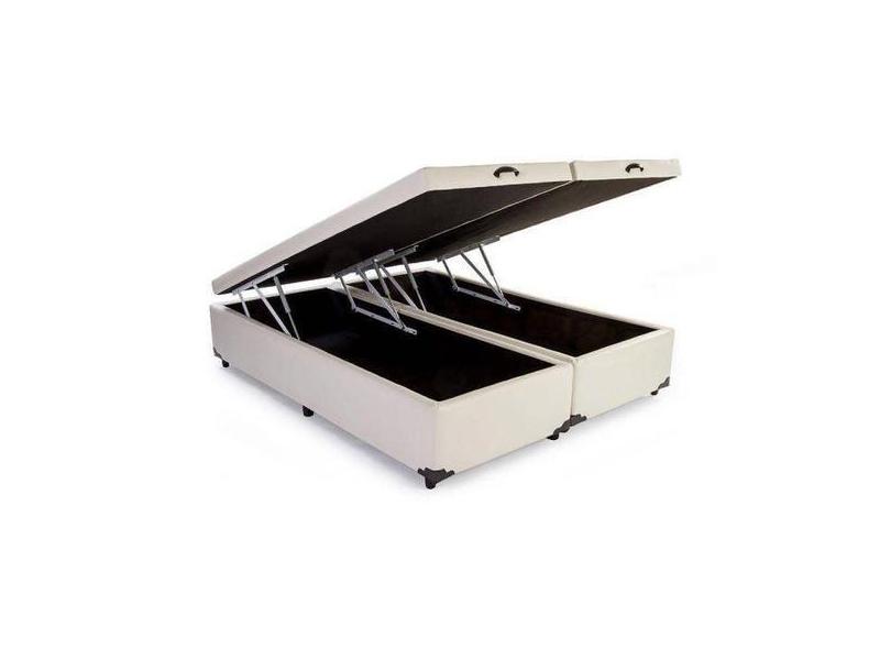 Base Box Baú Queen Bipartido Sintético Bege 39x138x188 - Lordcolchoes