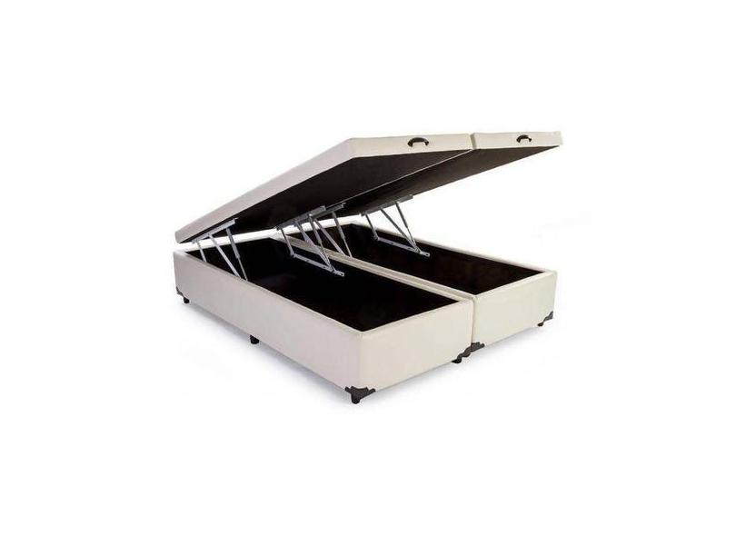 Base Box Baú Queen Bipartido Sintético Bege 39x158x198 - Lordcolchoes