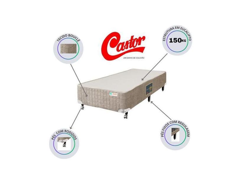 Base Box Castor Premium Bege Solteiro 78x188 - Medida Especial - Largu