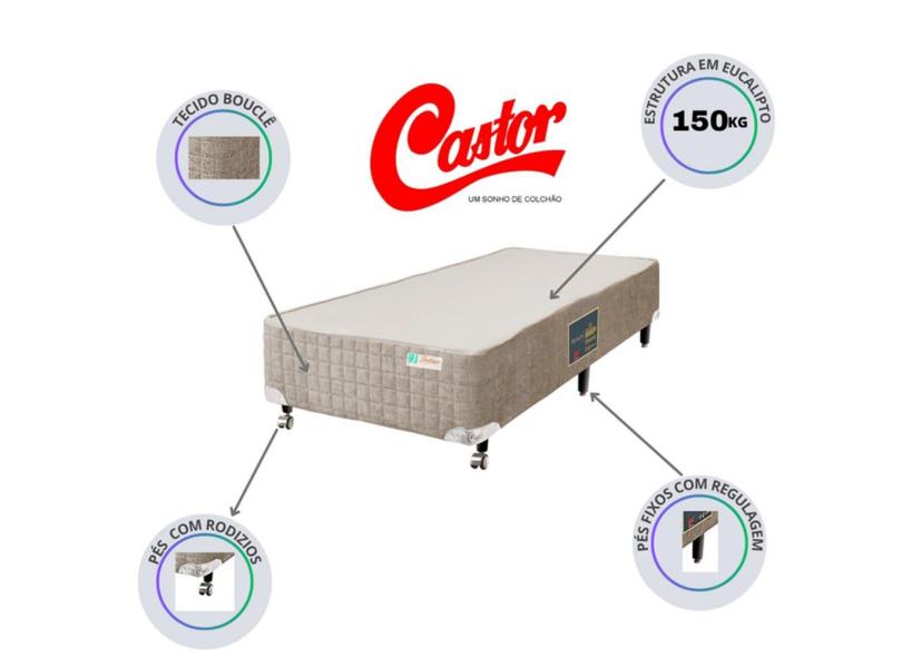 Base Box Castor Premium Bege Solteiro 88x188x40