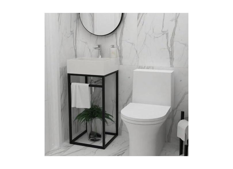 Base Box para Banheiro com Cuba em Ardósia Iron 40cm Preto/branco