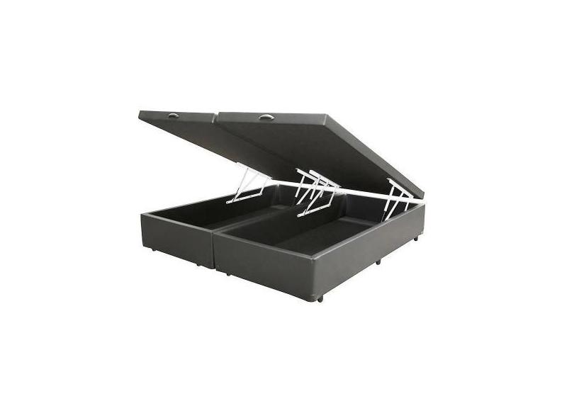 Base Cama Box Baú Bipartido Casal Material Sintético Cinza 43X138x188