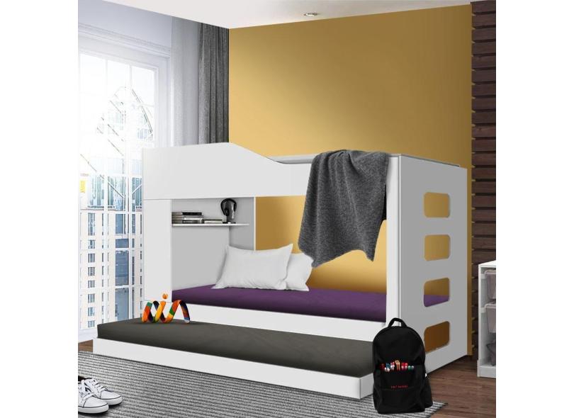 Beliche 100% Mdf Solteiro Com Cama Auxiliar Branco Halia Shop Jm