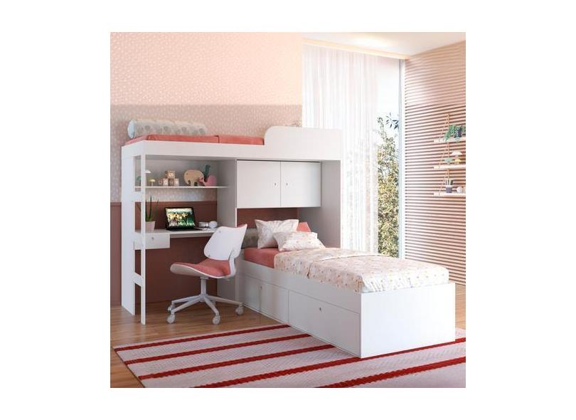 Beliche Atacama 6 Portas 1 Gaveta com Escada Cama Alta e Bancada de Es