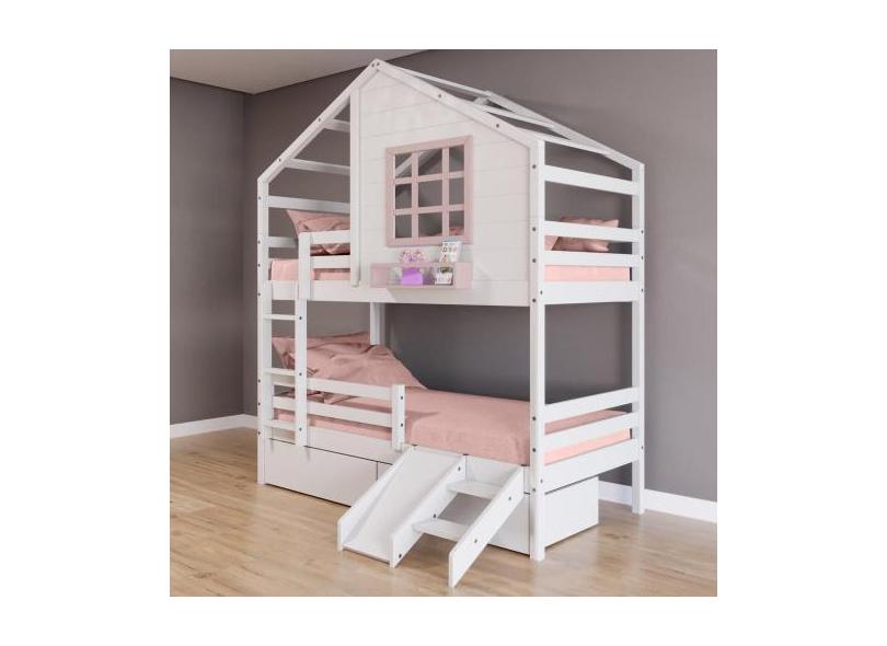 Beliche Casinha com Janela com 02 Gavetas com Escada/ Escorregador e G