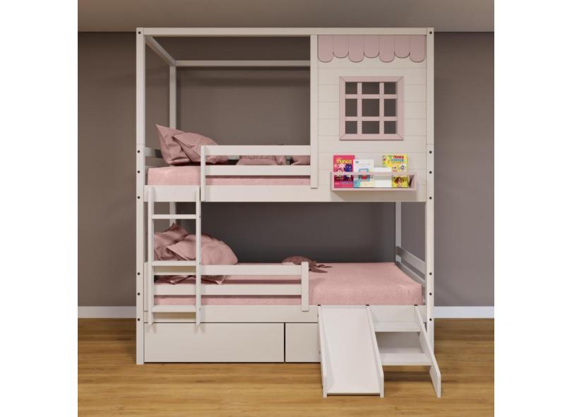 O menor preço encontrado no Brasil para Beliche Casinha Reta Com 02 Gavetas Escorregador E Grade Removível Madeira Maciça Branco/ Rosa Housin atualmente é R$ 3.120,82.