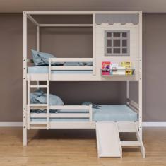 O menor preço encontrado no Brasil para Beliche Casinha Reta com Grade Removível e Escorregador Madeira Maciça Branco/ Cinza Housin atualmente é R$ 2.529,90.