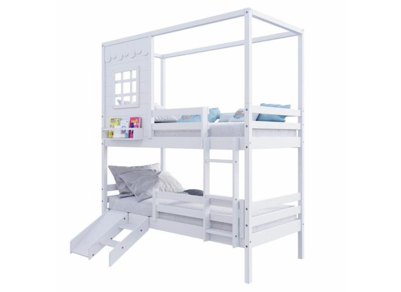 O menor preço encontrado no Brasil para Beliche Casinha Reta Com Grade Removível E Escorregador Madeira Maciça Branco Housin atualmente é R$ 2.509,20.