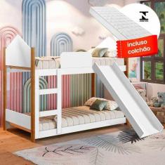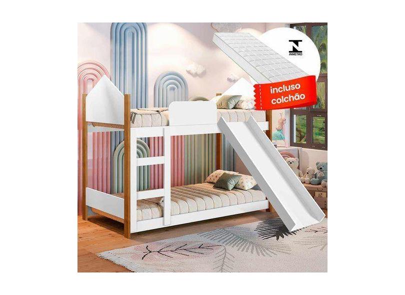 Beliche Infantil Casinha Branca Com Escorregador E 2 Colchões Magia Ga