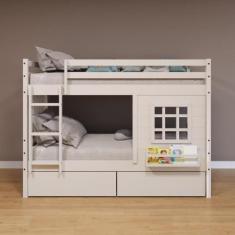 O menor preço encontrado no Brasil para Beliche Infantil Com Janela Gavetas E Cortina Madeira Maciça Branco Housin atualmente é R$ 2.239,92.