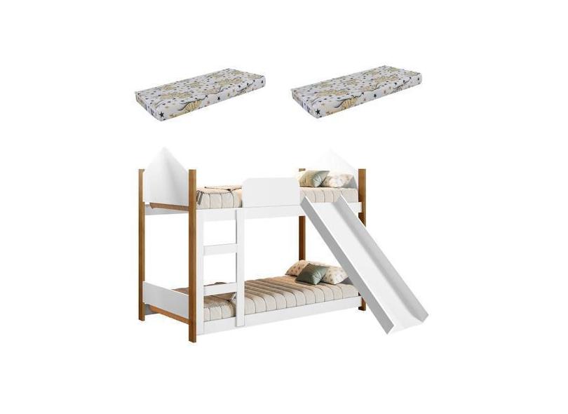 Beliche Infantil/Juvenil 100%Mdf Branco/Mel Com Escorregador E Escada