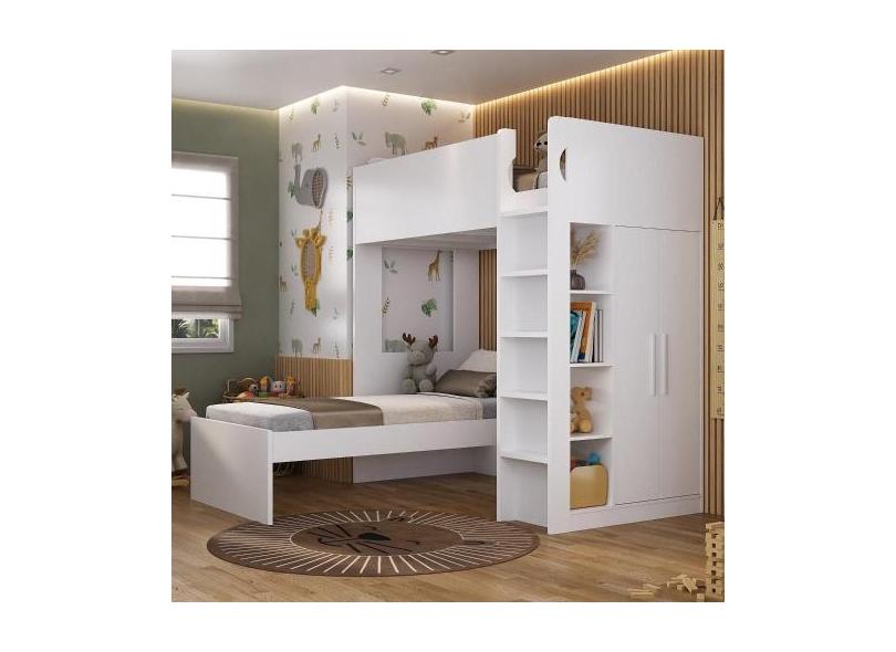 Beliche Infantil/Juvenil com Armário, Nichos e Mesa de Apoio - Foscari