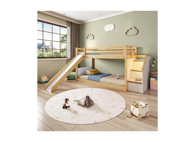 Beliche Infantil Montessori Com Escada Lateral Garden Led Grade Proteç
