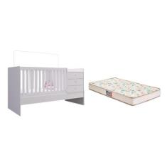 Berço Cama Multifuncional Branco e Colchão - FdECOR