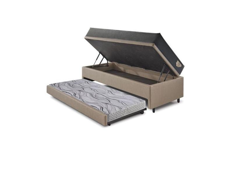 Bicama Box Baú 88x188x42 Revestimento Sintético Bege com Colchão Adapt