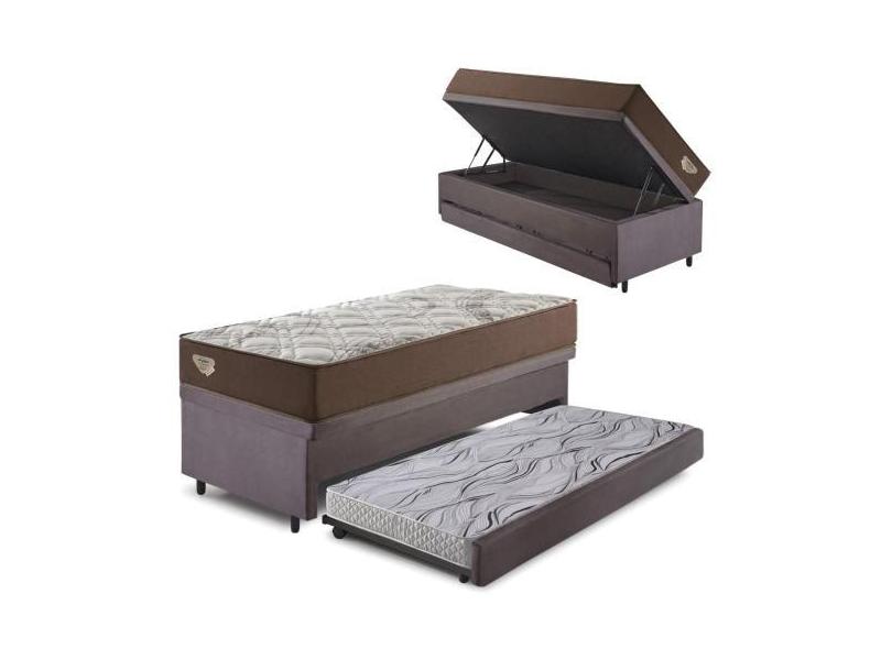 Bicama Box Baú Com Suede Cinza 96X203 Com Colchão Relax Adorabile Mola