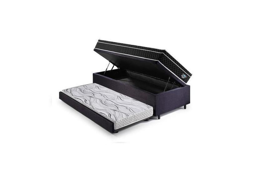 Bicama Box Baú Solteirão Suede Preto 96x203 com Colchão Gransleep Ecof