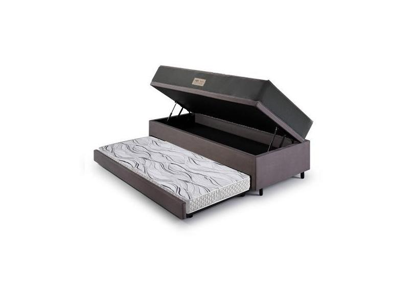 Bicama Box Baú Solteiro Com Colchão Dual Firm Ecoflex Suede Cinza 88x1
