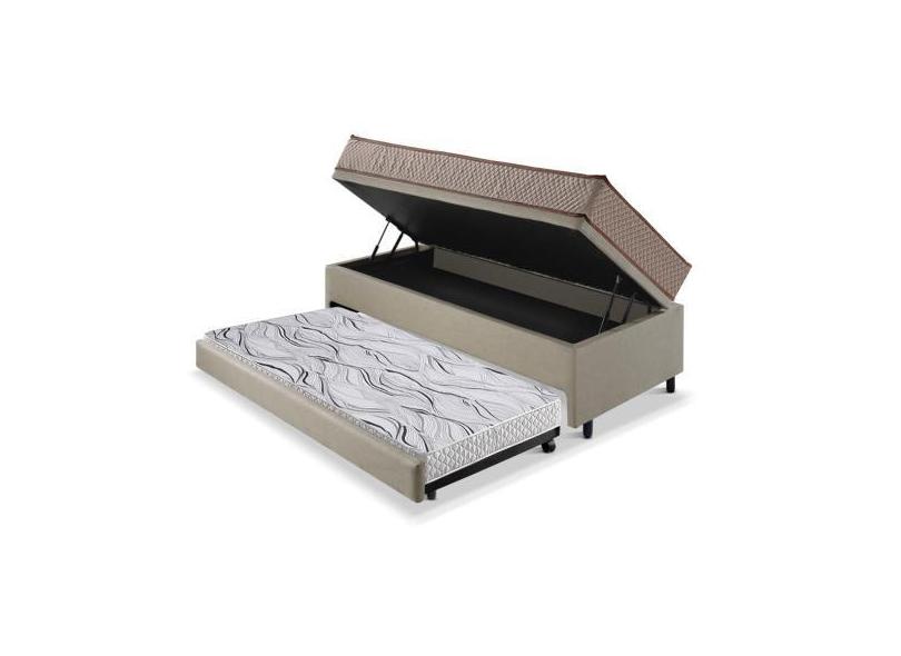 Bicama Box Baú Solteiro Linho Bege 88x188 Com Colchão Espuma Supreme M
