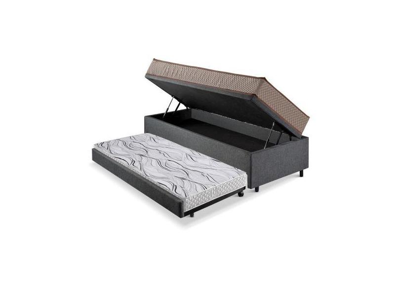 Bicama Box Baú Solteiro Linho Cinza 88X188 Com Colchão Espuma Supreme
