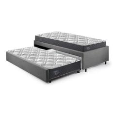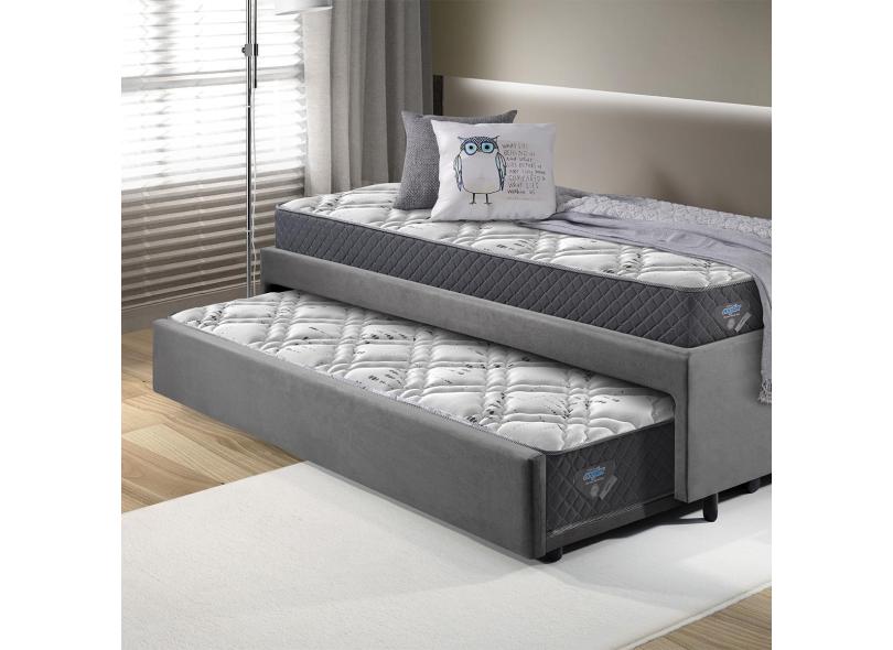 Bicama Box Solteirão 96x203 Suede Cinza Com Dois Colchões Adapto Molas Ensacadas Ecoflex