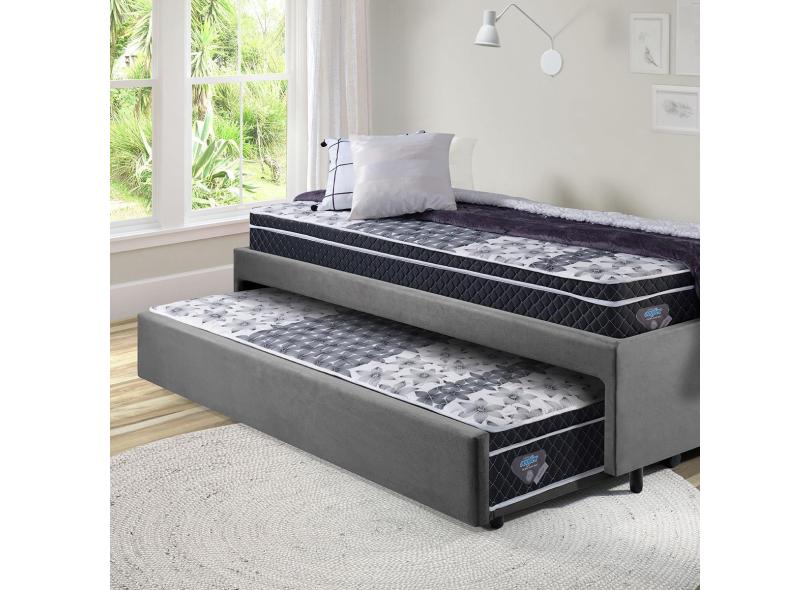Bicama Box Solteirão 96x203 Suede Cinza Com Dois Colchões Gransleep Molas Verticoil Ecoflex