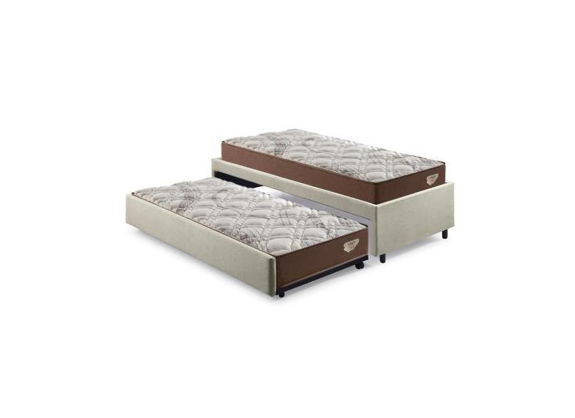 Bicama Box Solteiro 126X208 Linho Bege Com 2 Colchões Relax Adorabile