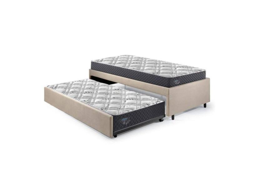 Bicama Box Solteiro 88x188 Suede com Dois Colchões Adapto Molas Ensacadas Ecoflex Bege, Cinza