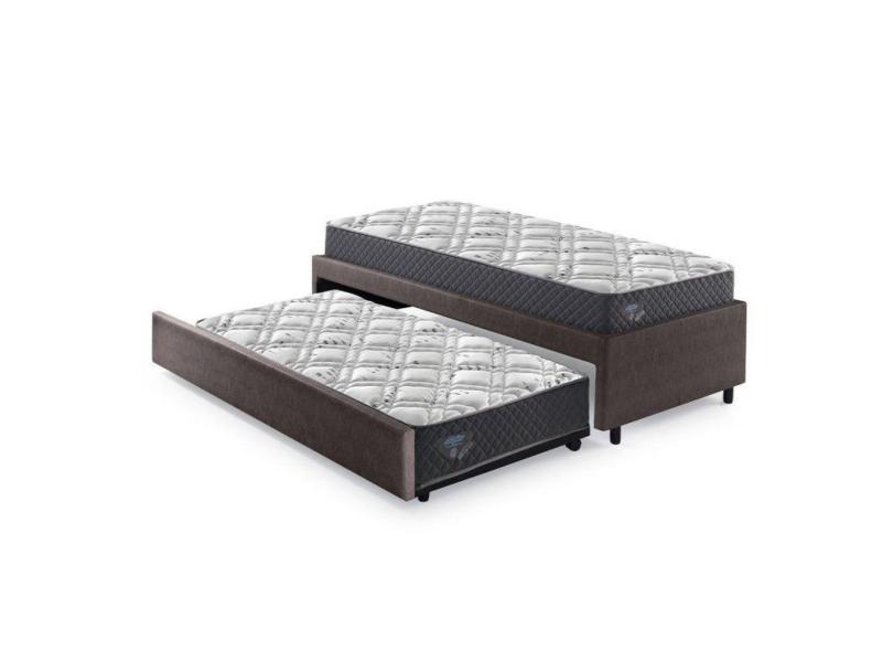 Bicama Box Solteiro 88x188cm Courino com Dois Colchões Adapto Molas Ensacadas Ecoflex Marrom/Cinza