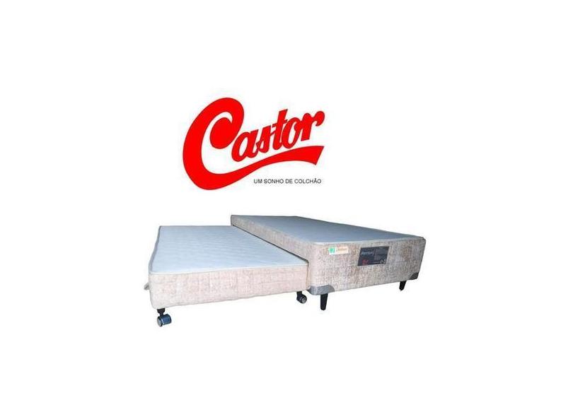Bicama Box Solteiro Castor Espuma D28 Acoplada Premium Bege 88X188x40