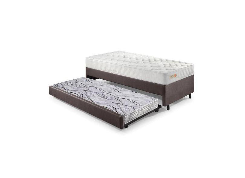 Bicama Box Solteiro material sintético Linho Marrom 88x188x28 cm com C