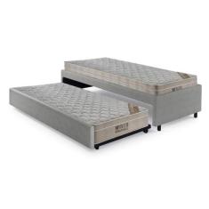 Bicama Box Solteiro Revestimento Sintético Linho Cinza 88X188 Com Dois