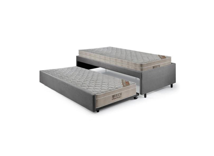 Bicama Box Solteiro Suede Cinza 88x188 Com Dois Colchões Airtech Molas Ensacadas Ortobom
