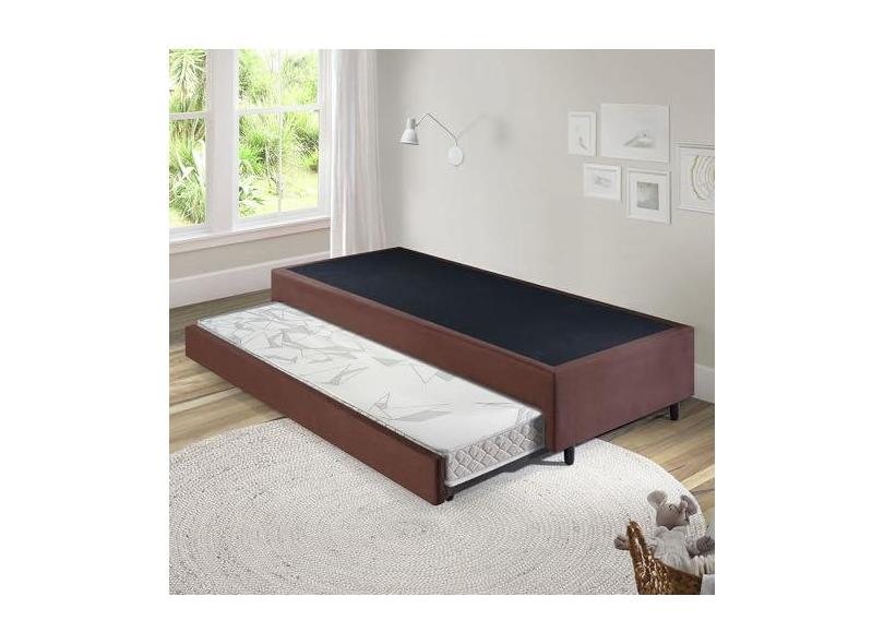 Bicama Box Solteiro Suede Marrom 120x203x28 cm com Colchão Auxiliar Ecoflex