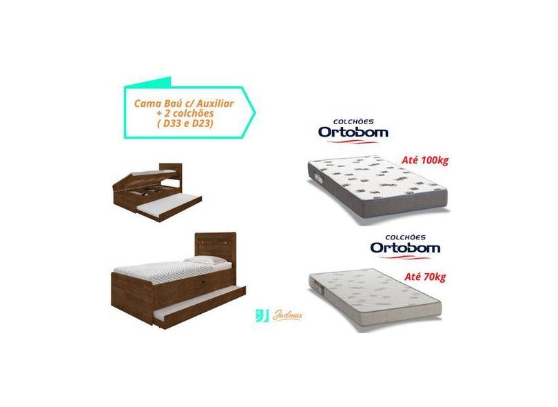 Bicama C/ Baú Framar + 1 Colchão D33 Ortobom 88X188x14 + 1 Colchão D2