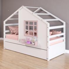 Bicama Casinha com Janela Madeira Maciça Branco/ Rosa Housin