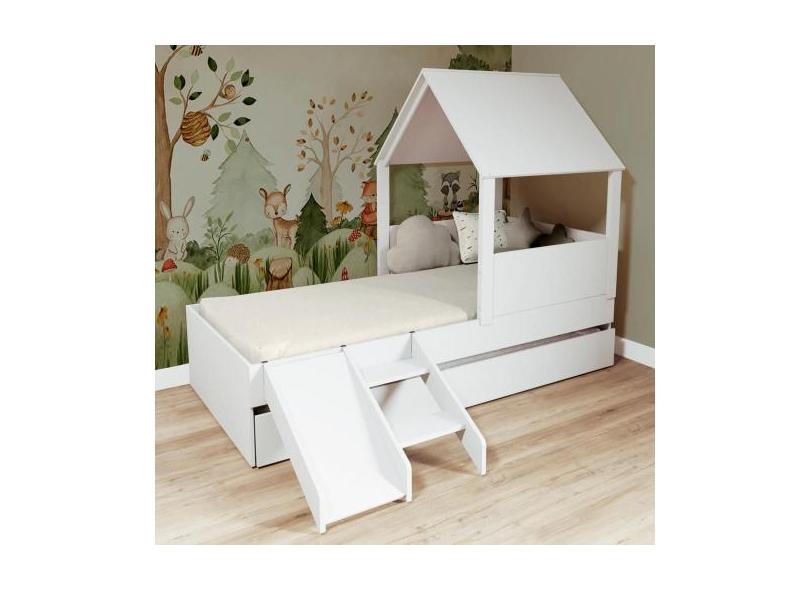 Bicama Casinha Com Telhado Mdf E Escada/ Escorregador Branco Mobilisto