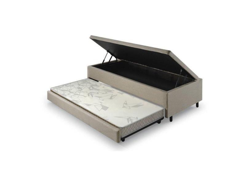 Bicama com Baú Solteiro Reforçado em Linho 88x188cm Bege