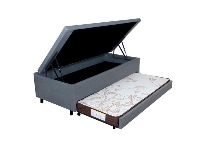 Bicama com Baú Viúva Reforçado 120x203 Cm em Courino Cinza