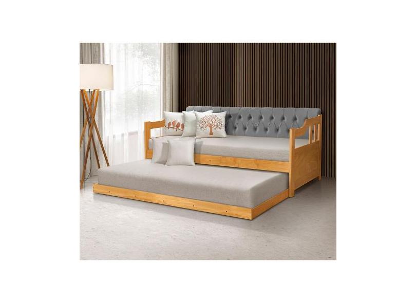 Bicama Dublin Estofado Capitonê Veludo Cinza Madeira Maciça Com Cama A