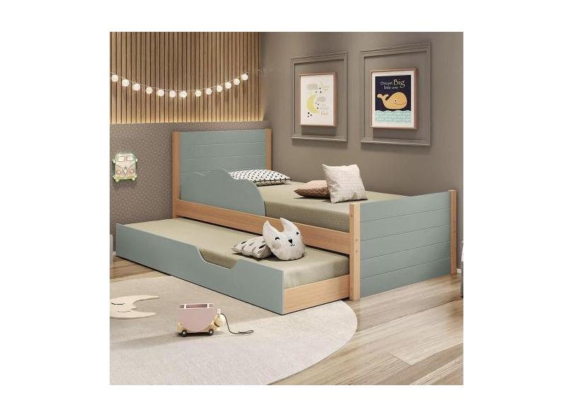 Bicama Infantil Woody Com Cama Auxiliar E Rodízios - Menta/Nature - Ca