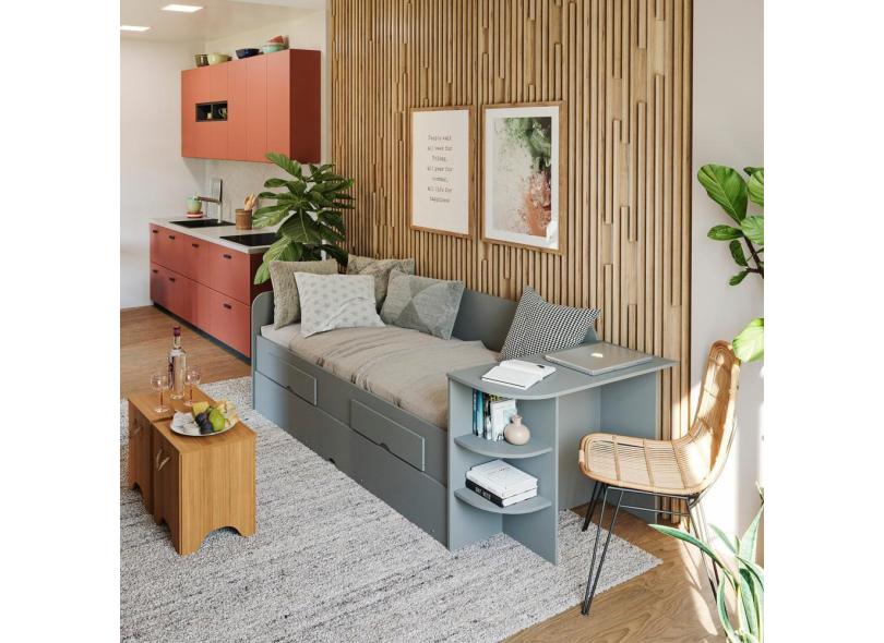 Bicama Sofá 2 Gavetas 100% MDF Escrivaninha Lateral Helena Cimol Grafite