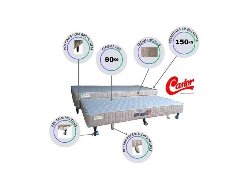 Bicama Solteiro Castor Espuma D28 Acoplada Premium Bege 88X188x40