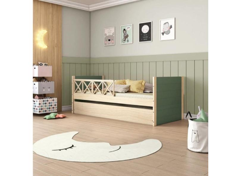Bicama Solteiro Garden Madeira Maciça e MDF Laca Casatema Verde/Natural