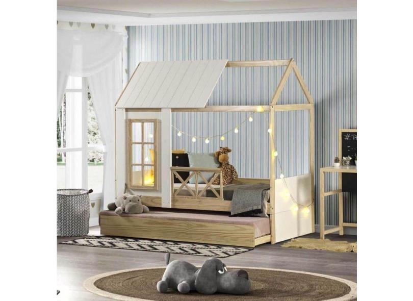 Bicama Solteiro Infantil Reversível Completa Casinha Garden Casatema Marroml/Branco