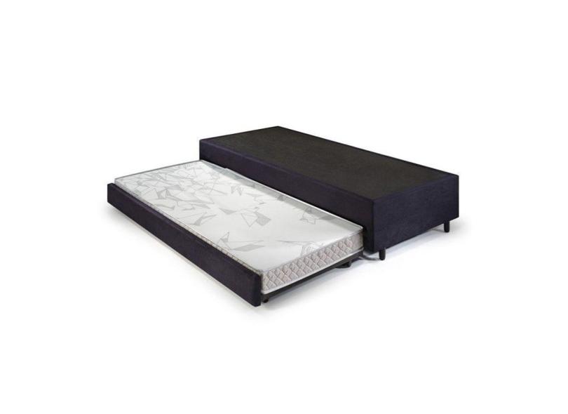 Bicama Solteiro King 96x203x28cm Suede e Colchão Auxiliar D23 78x188x12 Ecoline Preto